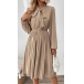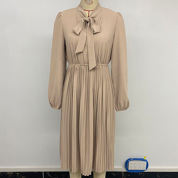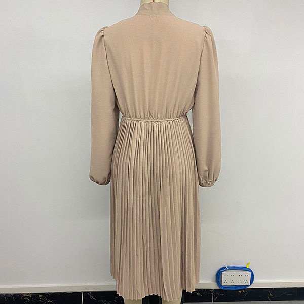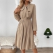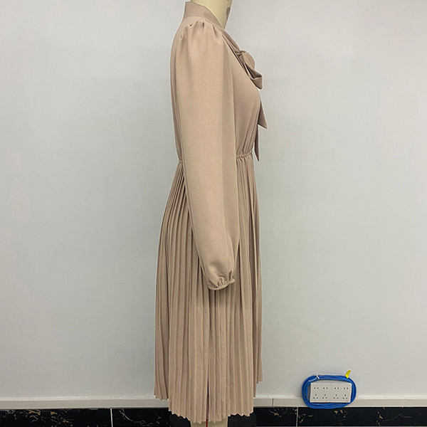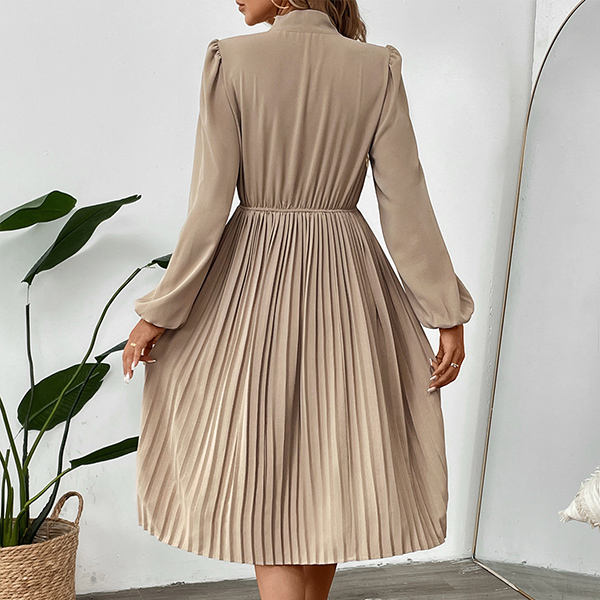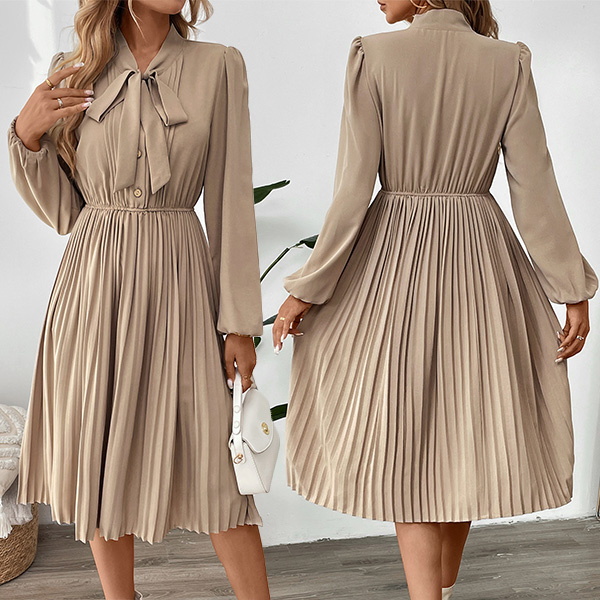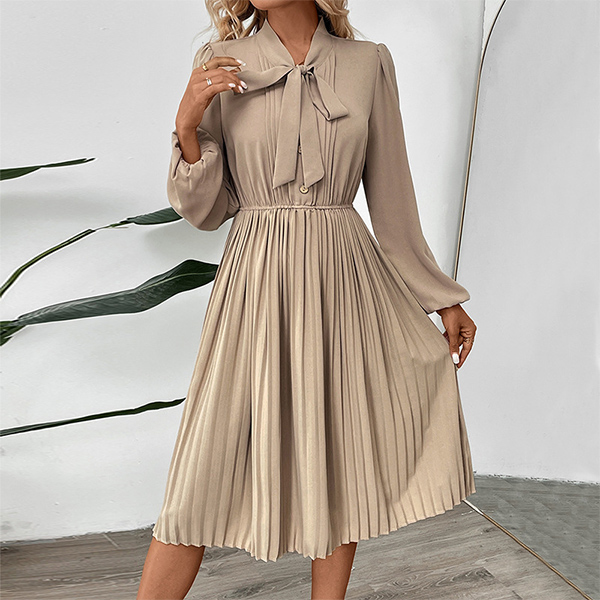 Fashion Self-tie Neck Long Sleeve High-rise Pleated Dress