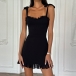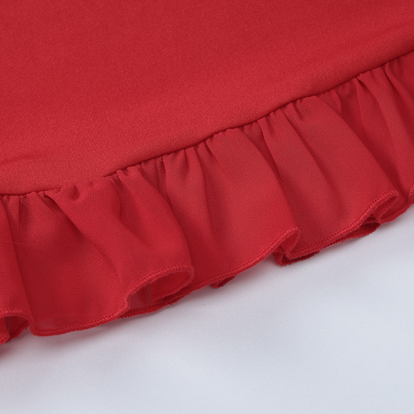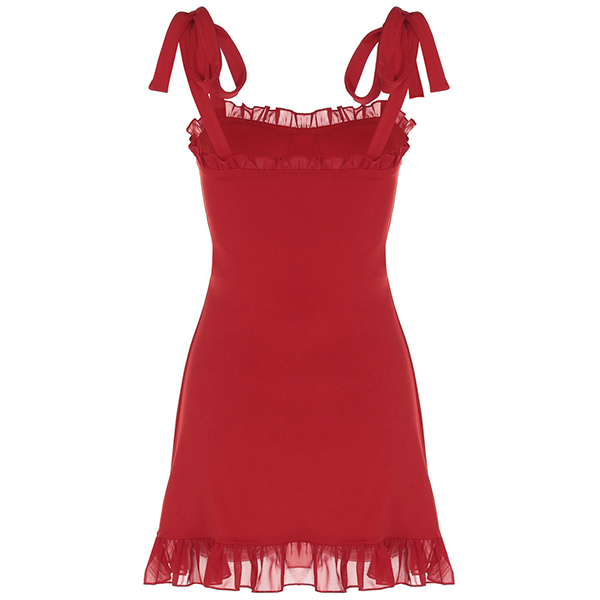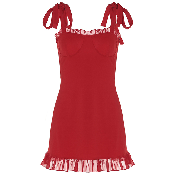 Fashion Self-tie Shoulder Strap Ruffle Hemline Bodycon Dress
