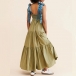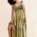 Fashion Self-tie Shoulder Strap Smocked Bodice Tiered Dress