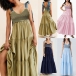 This is a trendy and chic dress that exudes bohemian charm and effortless femininity. The self-tie shoulder straps allow you to adjust and customize the fit of the dress, adding a playful and versatile element to the overall look. The smocked bodice provides a flattering and comfortable fit that accentuates your figure and adds a touch of texture and detail.The tiered design of the dress creates a flowy and romantic silhouette that moves beautifully with every step, adding a whimsical and ethereal touch. Perfect for this summer wear!