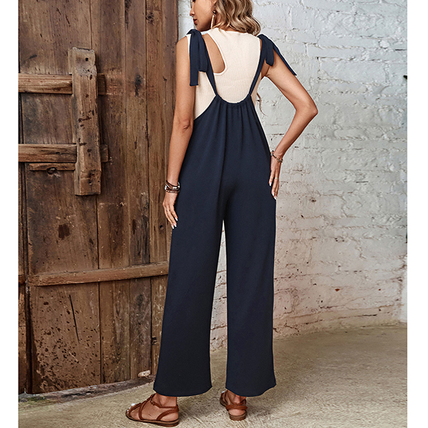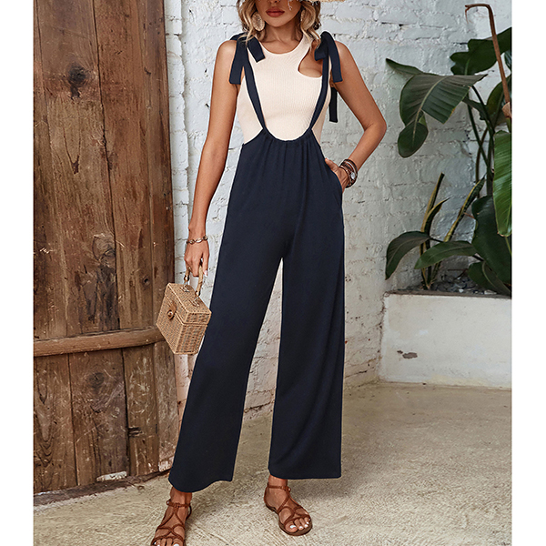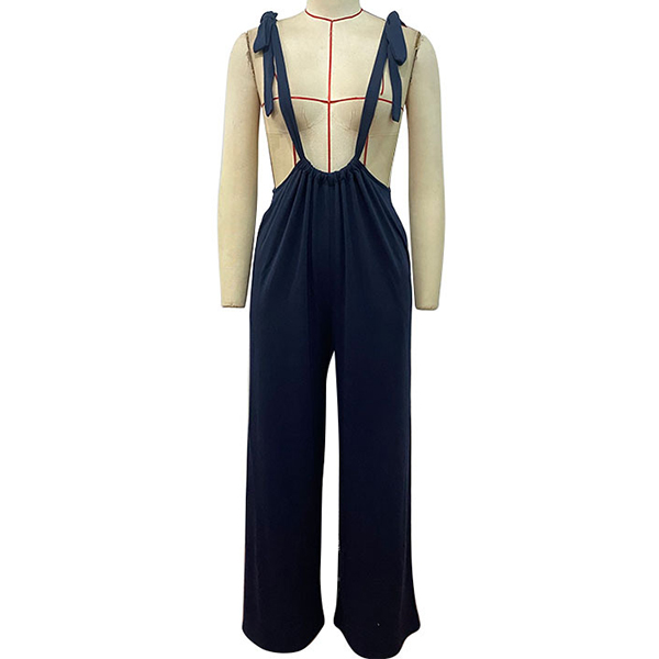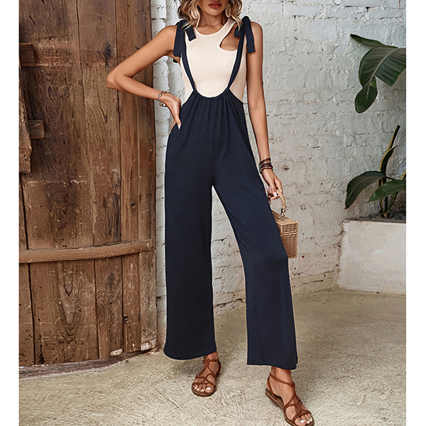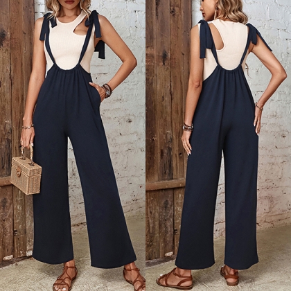 Fashion Self-tie Shoulder Strap Straight-cut Suspender Jumpsuit