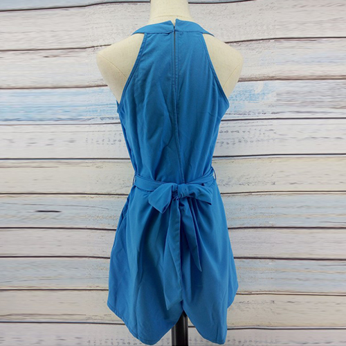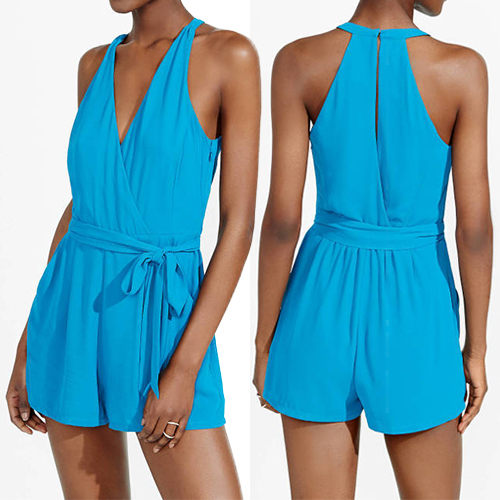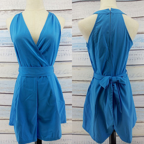 Switch up for some flirty fun with this playsuit. It features V neckline,self-tie and sleeveless.