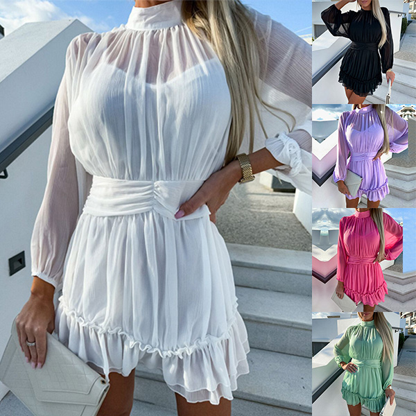 This dress is the perfect blend of fashion-forward design and feminine charm. The semi-through chiffon spliced detailing adds a touch of allure and sophistication, making it a standout piece in your wardrobe. Wanna have a try?