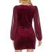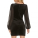 Fashion Semi-through Gauze Spliced Long Sleeve V-neck Irregular Hemline Bodycon Dress