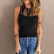 Fashion Semi-through Gauze Spliced Round Neck Sleeveless Shirt