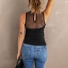 This shirt features a semi-transparent gauze material that is spliced together to create a unique and eye-catching design. The round neck and sleeveless design provide a comfortable and breathable fit, making it ideal for warmer weather. Wanna have a try?