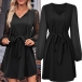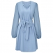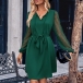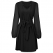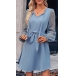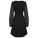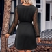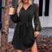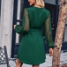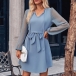 Fashion Semi-through Gauze Spliced Swiss-dot Long Sleeve Self-tie V-neck Waist Mini Dress