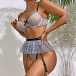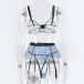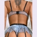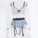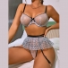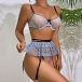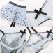 Fashion Semi-through Lace Spliced Bowknot Polka-dot Printed Ruffled Three-piece Lingerie Set