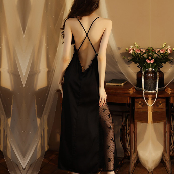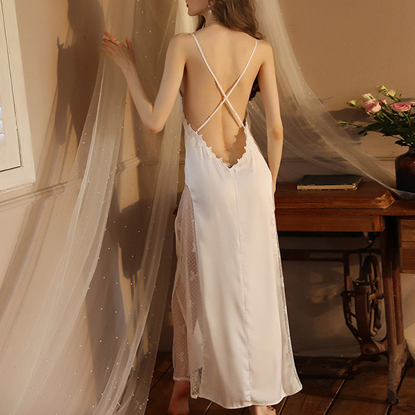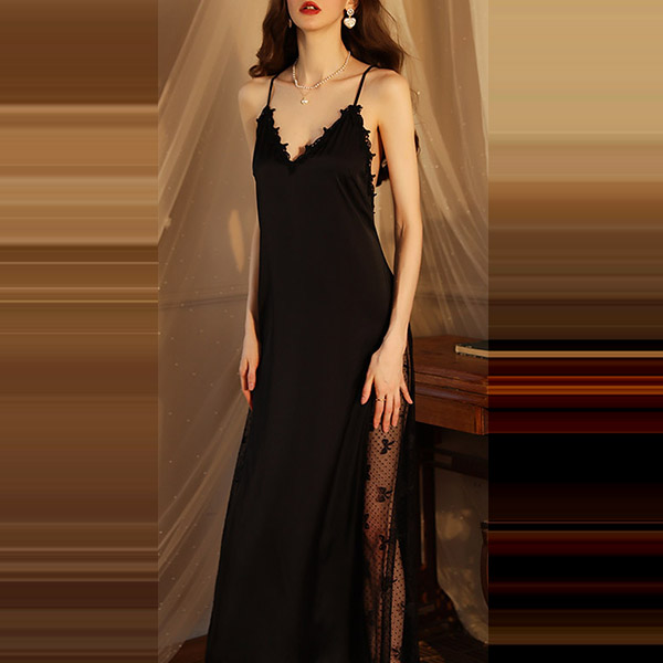 Fashion Semi-through Lace Spliced Lingerie Dress Nightwear Dress