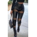 Pour un look unique de mode de rue ! Essayez ce pantalon slim. L'épissure en maille semi-transparente ajoute une touche d'originalité, tandis que le cuir artificiel PU lui confère un aspect et un toucher luxueux.