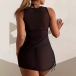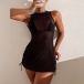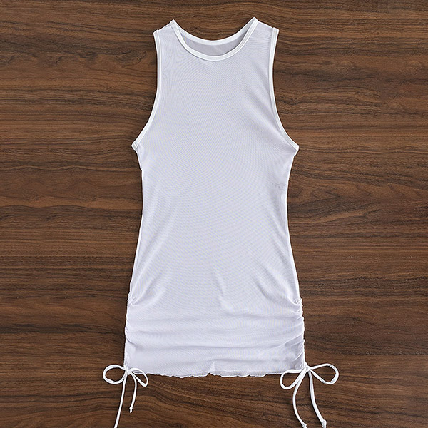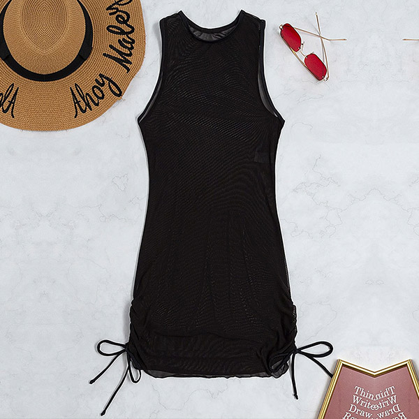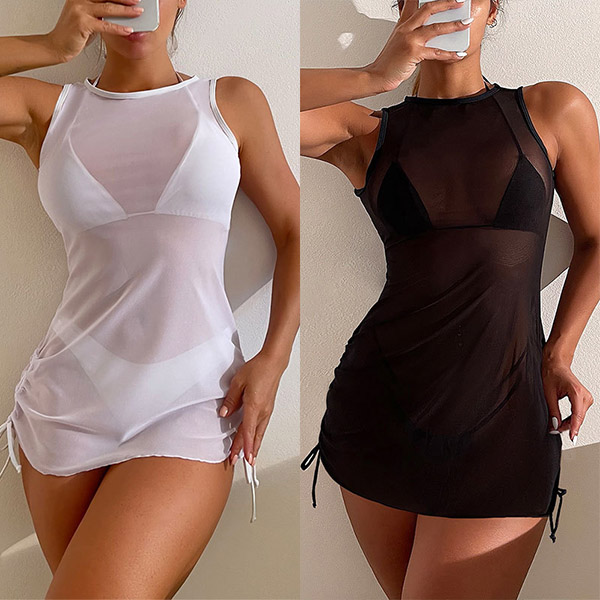 Fashion Semi-through Solid Color Side Drawstring Swimsuit Cover-up Dress