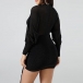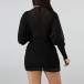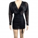 Fashion Semi-through Solid Color V-neck Batwing Sleeve Drawstring Bodycon Dress