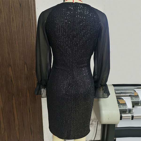This party dress features sequin embellishments, a crew neck, and gauze spliced along the long sleeve, creating a stylish and glamorous look. Wanna have one?