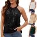 Fashion Sequin Halter Neck Sleeveless Shirt
