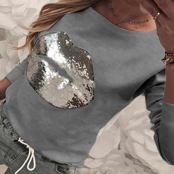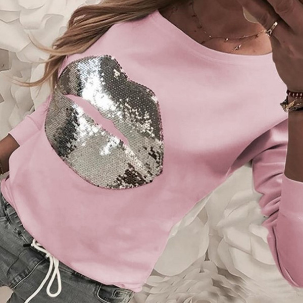 What makes this sweatshirt looks so chic and attractive? It owes to the sequin lip pattern design. On the other hand,the soft and breathable fabric can give you a comfortable day. For your off-duty time or casual weekends,this simple piece is a good partner.