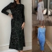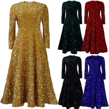 Fashion Sequin Round Neck Long Sleeve Party Dress