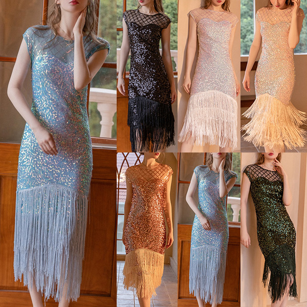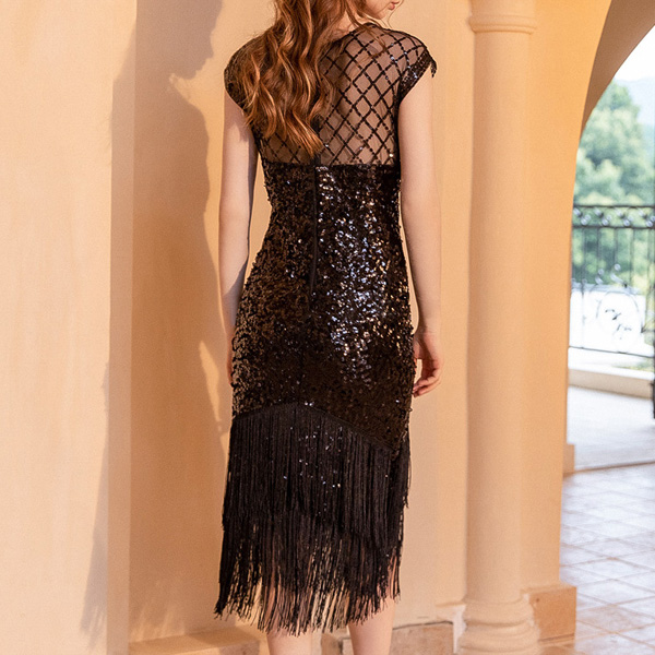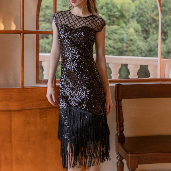 Fashion Sequin Round Neck Sleeveless Tassel Bodycon Dress