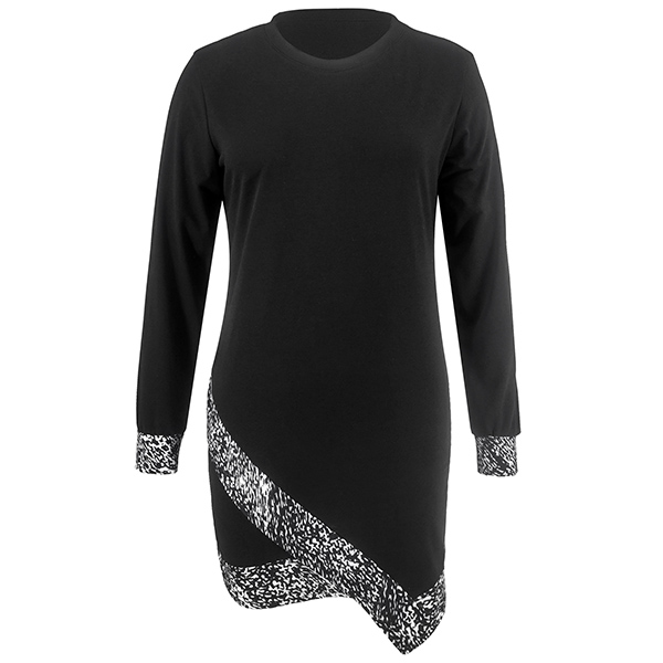 Fashion Sequin Spliced Irregular Hem Long Sleeve Round Neck Dress