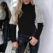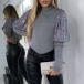 Only need one glance,you would be attracted by this chic and unique top. The sequin spliced lantern sleeve design is the highlight,which makes this piece look so attractive,while the fit silhouette design can showcase your perfect body-line. You can match with a high waist bottom to finish a stylish and charming style.