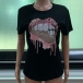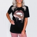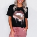 Fashion Sequin Spliced Leopard Lip Pattern Short Sleeve T-shirt
