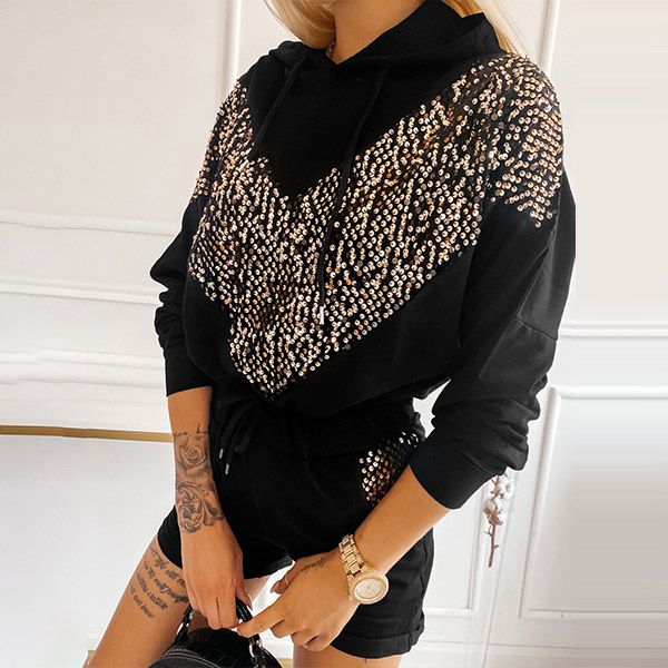 Make your autumn wardrobe more complete by adding this sweatshirt. The sequin details make this piece look so shinning and attractive. Crafted from soft and breathable fabric,with long sleeve,hooded and a loose silhouette,this piece also can give you an all-day comfort. Perfect fit for matching with different style bottoms.