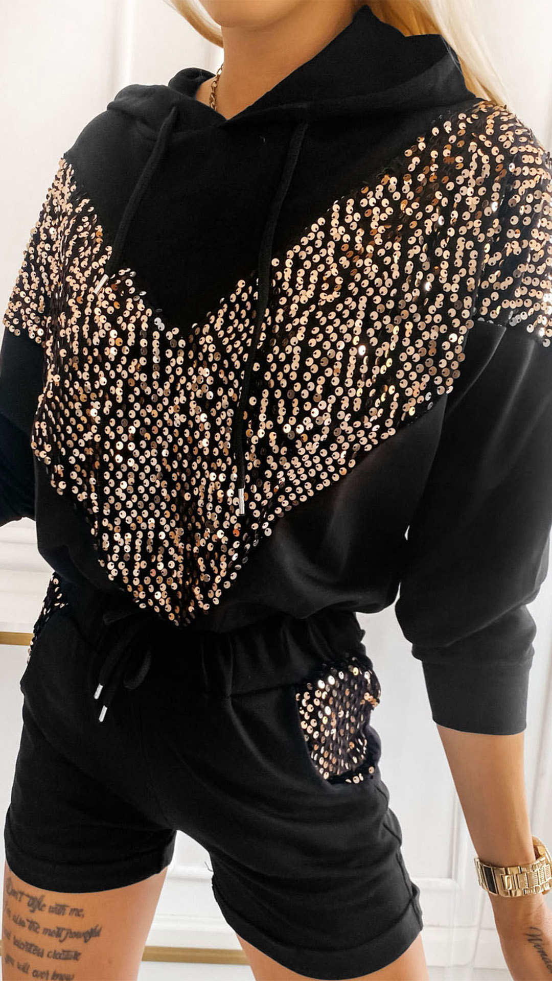 Fashion Sequin Spliced Long Sleeve Hooded Loose Sweatshirt