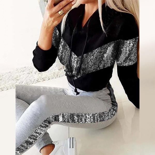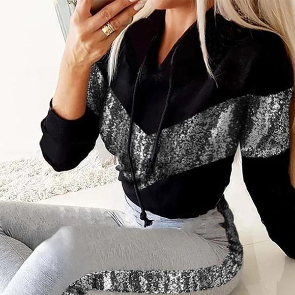 As for a laid-back but fashionable daily look,you can just have a try this two-piece set. The sequin spliced details make it look so stylish and attractive. Including a long sleeve hooded sweatshirt and a pants,crafted from soft and breathable fabric,this two-piece set can give you a comfortable day ass well as maintain your personality.