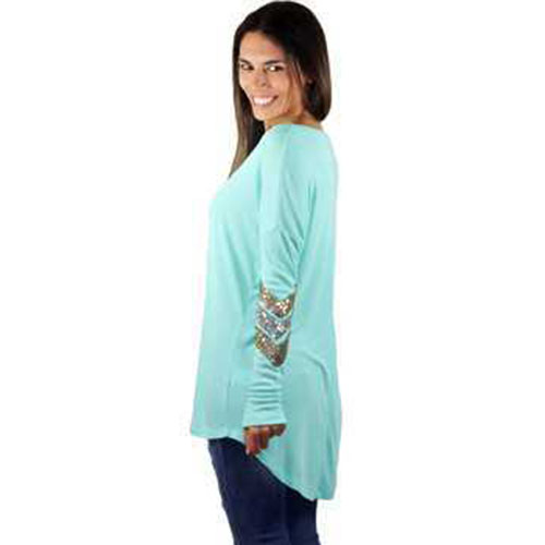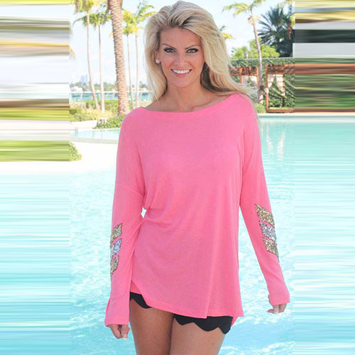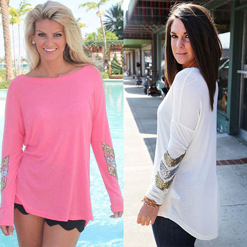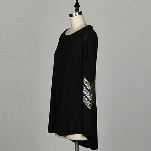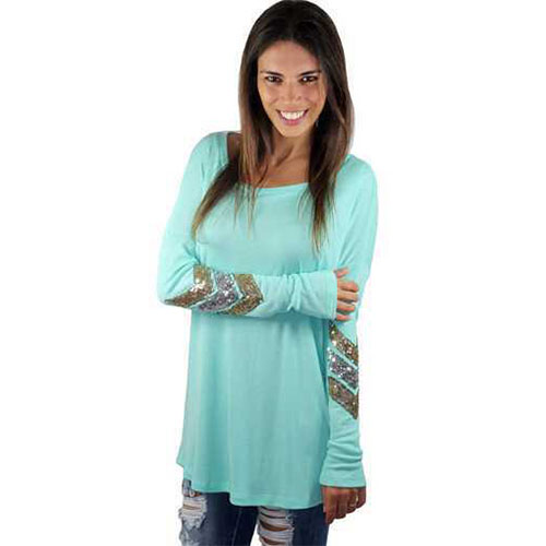 give you a comfortable wearing experience. Features sequin spliced long sleeve,round