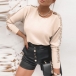 Wanna enrich your wardrobe ensemble? Then you can make your eyes focused don this knit top. The sequin spliced details at the sleeve part make this piece look so shinning and attractive. Finished with long sleeve and round neck,this knit top is your perfect partner in these spring and autumn days. Attracted? Then buy one?