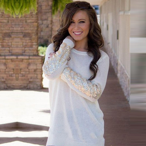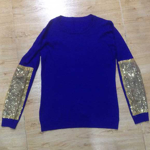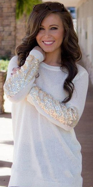 and round neck design. Sleeve with sequin spliced makes it more eye-catching. A perfect choice