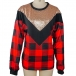Fashion Sequin Spliced Long Sleeve Round Neck Plaid Sweatshirt