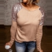 If you are tired of the simple style t-shirts,then you can have a try this piece. The sequin spliced details at the shoulder part make this piece look so stylish and attractive. Crafted from soft and breathable fabric,with long sleeve and round neck design,this t-shirt is perfect fit for your casual days and weekends.