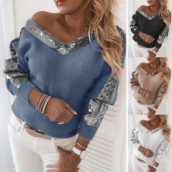When you feel a little cold,you can just have a try this long sleeve top. It comes with a solid color tone,the sequin spliced details will make this piece look more shinning and attractive. No matter matching with a shorts,skirt or jeans,you can look fashionable enough!