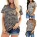 Fashion Sequin Spliced Pocket Short Sleeve V-neck Camouflage Printed T-shirt