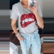 When it comes to a casual,relaxed and stylish daily style,you can just have a try this t-shirt. The red-lip pattern and sequin details make this piece look so playful and eye-catching. No matter what kind of bottoms you pair with,it can hardly wrong!