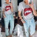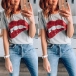 Fashion Sequin Spliced Red-lip Pattern Short Sleeve T-shirt