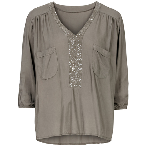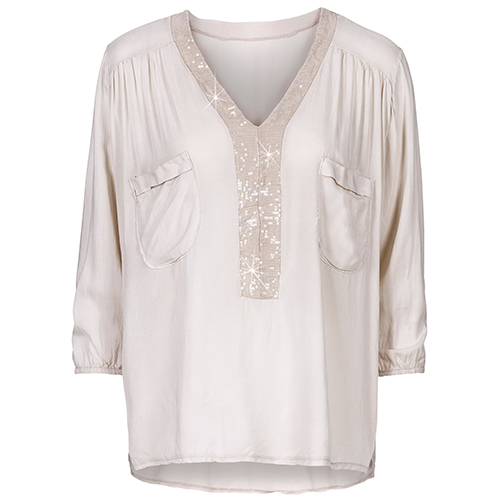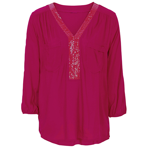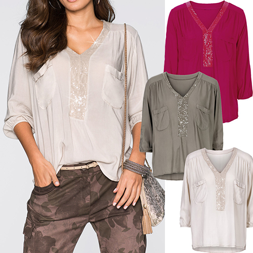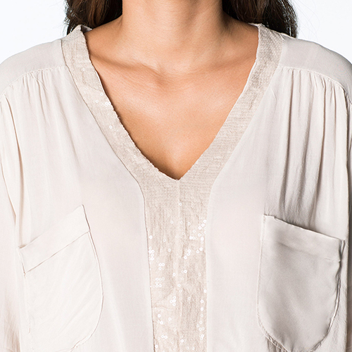 Slip into this top for a stylish look as well as a comfortable wearing feeling. V-neckline with sequin