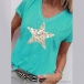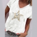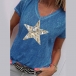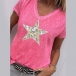 For a simple,casual and relaxed daily style,this t-shirt is a good choice. The sequin star pattern design breaks the simple and dull design style. Crafted from soft and breathable fabric,with short sleeve and v-neck design,this piece can give you a long-lasting comfort. Perfect fit for matching with different style bottoms.