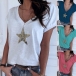 Fashion Sequin Star Short Sleeve V-neck T-shirt