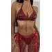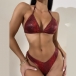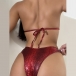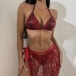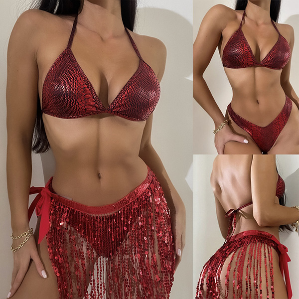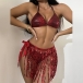 Fashion Sequin Tassel Bikini Set Consist of Self-tie Bikini Top, Low-rise Bikini Bottom and Cover-up Tassel Skirt
