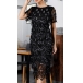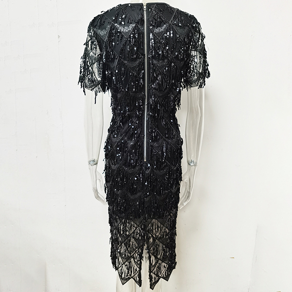 Fashion Sequin Tassel Crew Neck Short Sleeve Party Dress