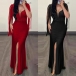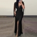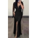 Fashion Sequin V-neck Tassel Front Slit Maxi Party Dress