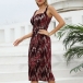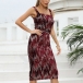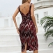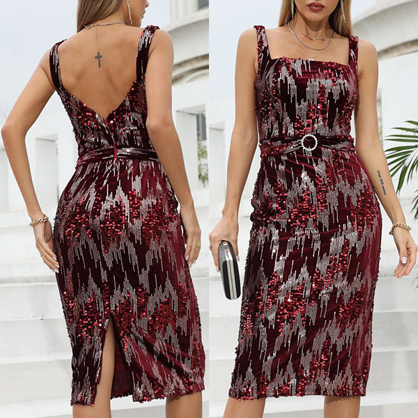 Fashion Sequined Backless Slit Sleeveless Bodycon Dress with O-ring Belt