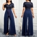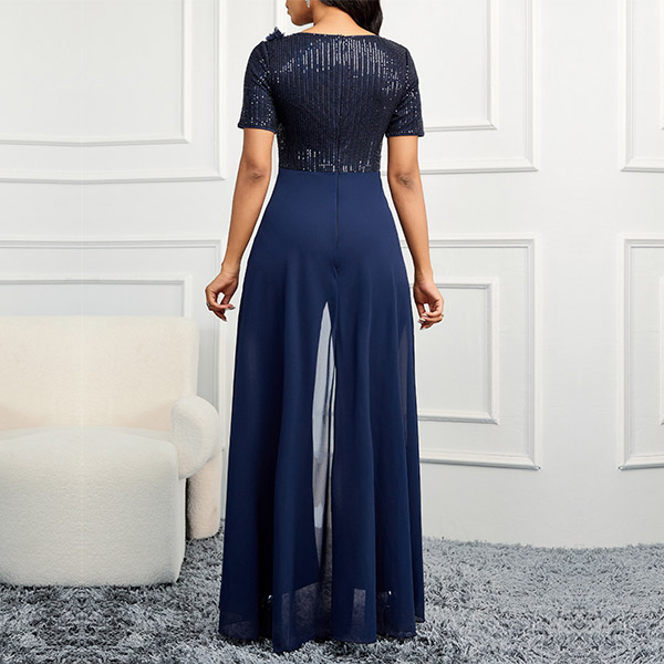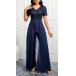 Fashion Sequined Bodice V-neck Short Sleeve Wide-leg Jumpsuit