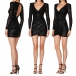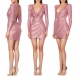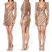 Fashion Sequined Draped V-neck Long Sleeve Ruched Bodycon Party Dress