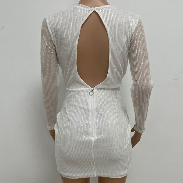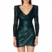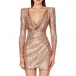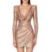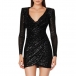 The shimmering sequined fabric is sure to make you stand out from the crowd. The draped V-neckline and long sleeves give the dress a sophisticated look, while the ruched bodycon fit will hug your curves in all the right places.