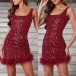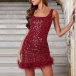 Wow, bling-bling party dressThe sequined detailing adds a touch of sparkle and glam, while the feather splicing along the hemline creates a unique and eye-catching texture. This dress is perfect for a night out at a club, a fancy dinner party, or any other special occasion where a woman wants to make a statement.