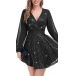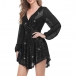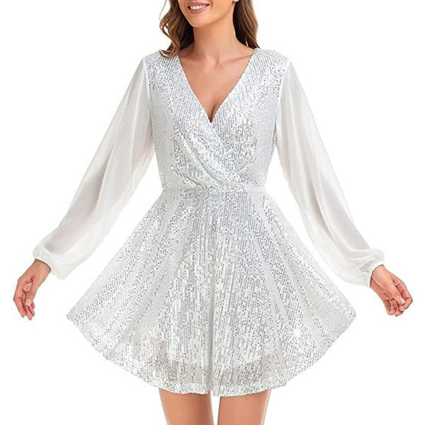 Fashion Sequined Gauze Spliced Long Sleeve Mini Party Dress