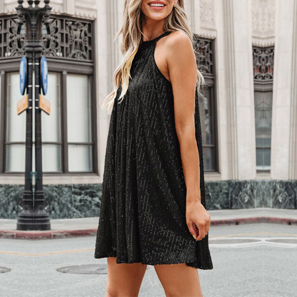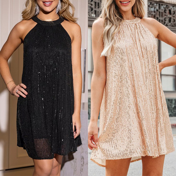 This mini dress features overall sequins design, a halterneck design, and a mini length for a stylish and dazzling look. Color:Black,Apricot, which one do you like?