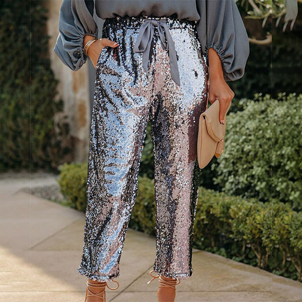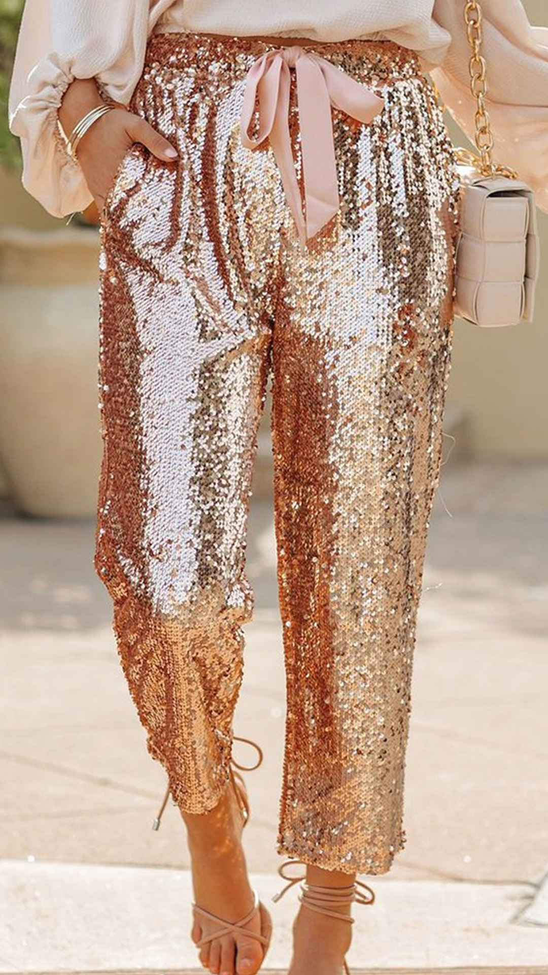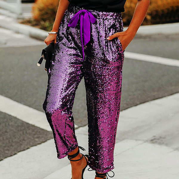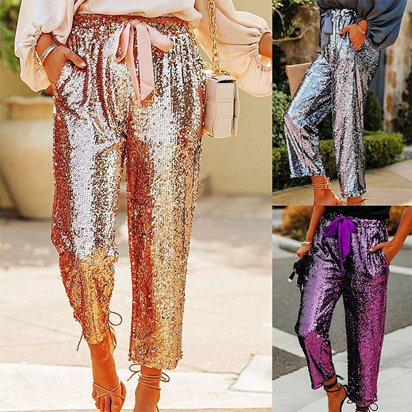 Look at this pants! The sequined fabric is sure to turn heads, and the pants are lined for comfort.